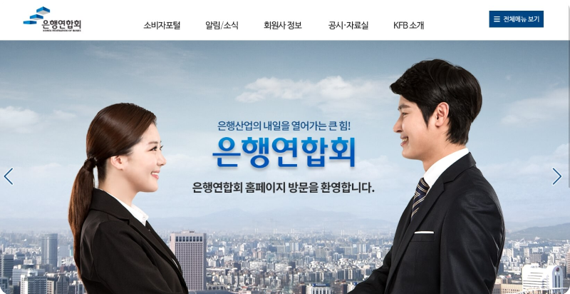 은행연합회(https://www.kfb.or.kr/main/main.php)를 클릭하고 들어가시면 위에 있는 화면처럼 나오는데요. 여기에서 소비자포털을 한 번 클릭해보세요.