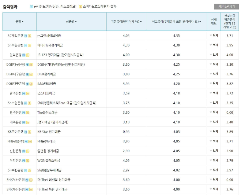 그리고 금리/수수료 비교 페이지에서는 예금금리도 알 수 있습니다. 이렇게 말이죠